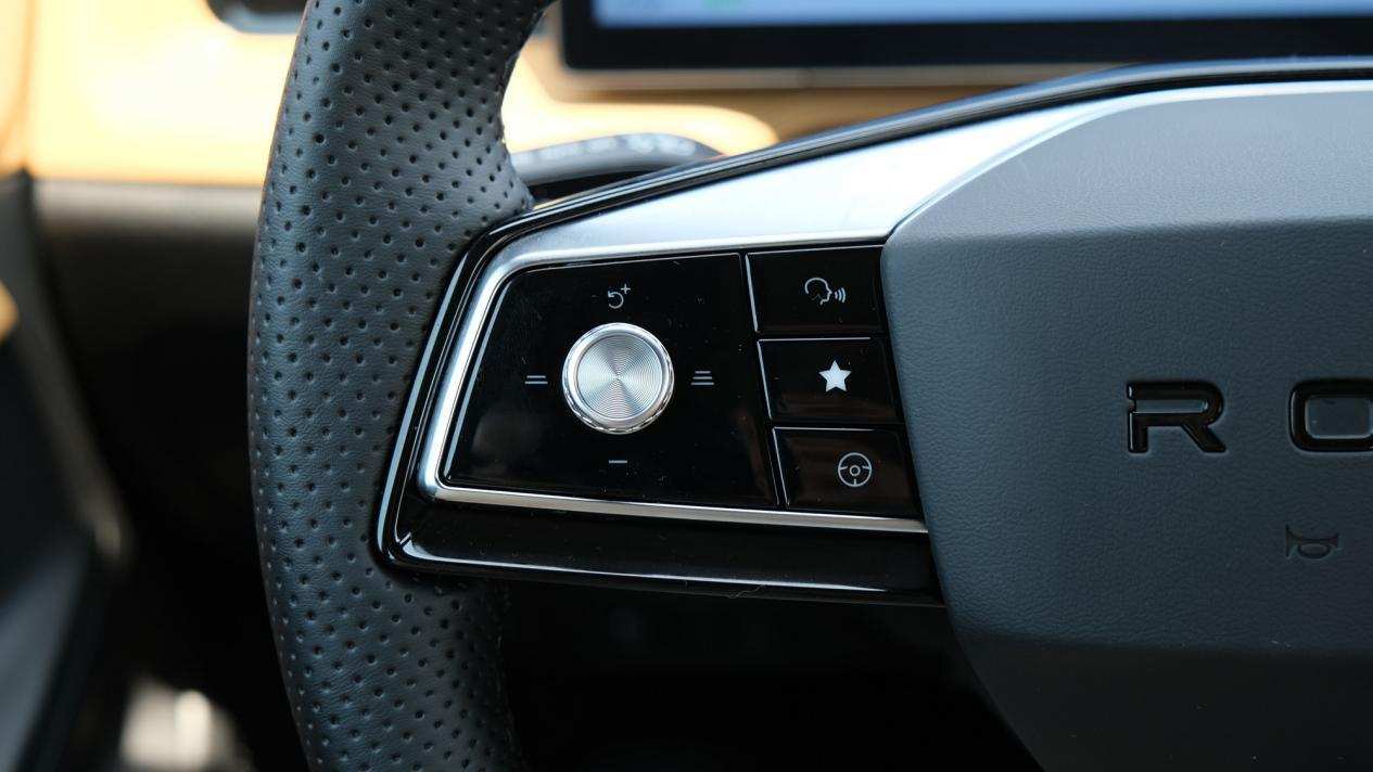 好了,我们继续回到新车上来。话说,第三代荣威eRX5方向盘上的菜单按键,不是传统的按压式,也不是滚珠式,也不是看起来的旋钮式,而是十分少见的摇杆式,就,还挺新鲜的。