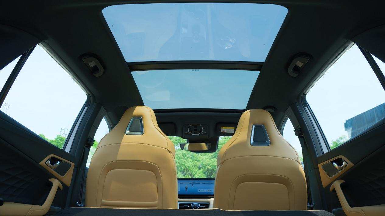 后排座椅放倒后,后备箱能与之形成一个纯平的空间,再配上尺寸巨大的全景天幕,可谓是最近兴起的「精致露营」完美伴侣,躺在后排,你想看星星,看月亮,看什么都行。