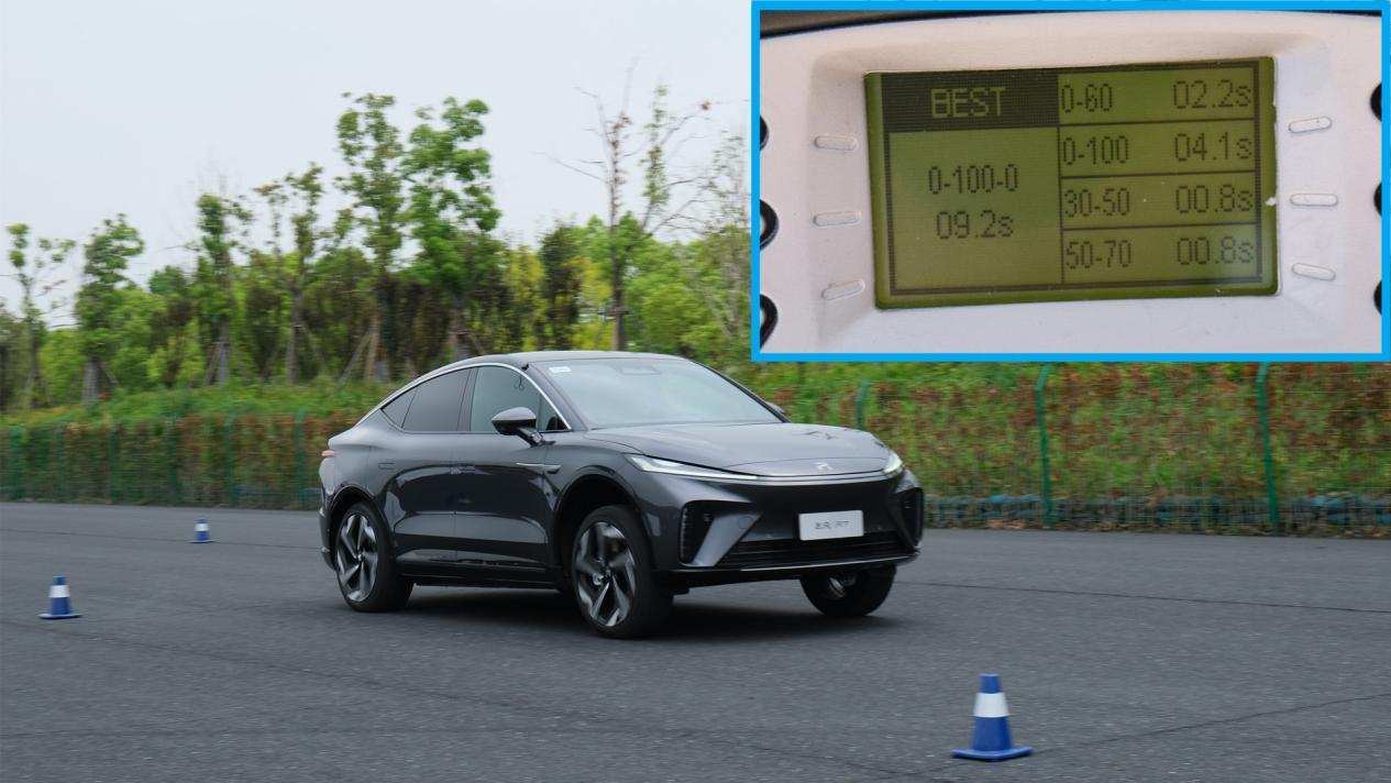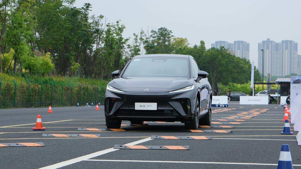 抱着试一试的心态,我全力踩下了电门,这台车起步迅猛,但依赖四驱系统,全程没有任何打滑,G值也基本顶着极限在走,最后我们实测的零百成绩为4.1s。怀着将信将疑的态度,我们又分别试驾了场地里的另外几台车,几轮测试下来,最快的4.0s,最慢的4.2s。好家伙,飞凡R7算是把反向『虚标』玩明白了,未来准车主的小确幸这不就来了嘛。