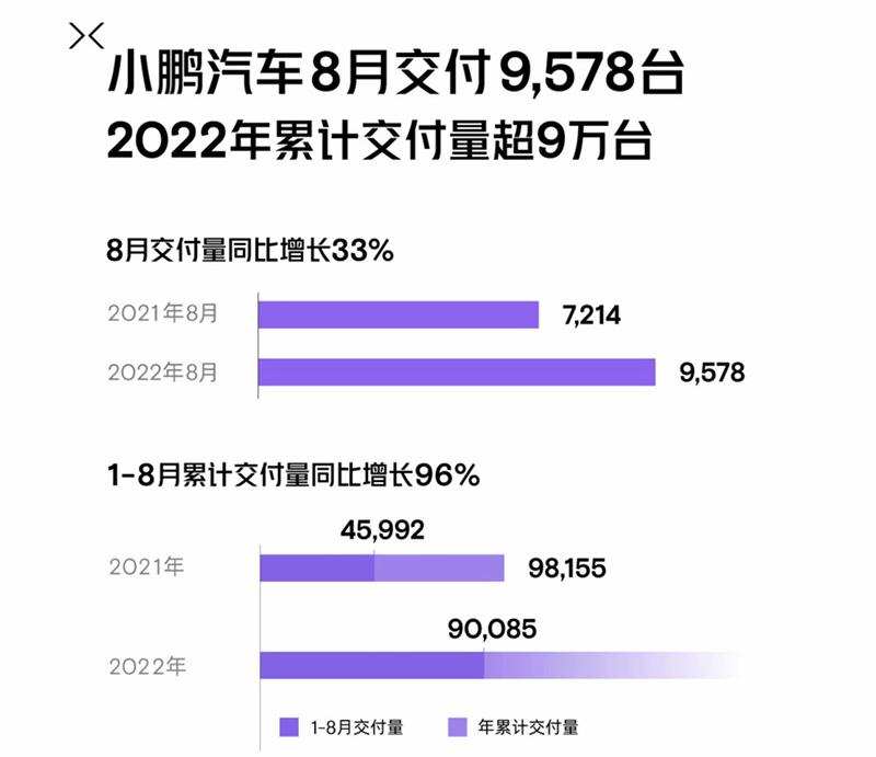 9月1日,小鹏汽车公布了8月成绩单,新车交付量为9578台,尽管低于上月的交付量11524台,不过同比增长幅度还是达到了可喜的33%。其中小鹏P7交付5745台,小鹏P5交付2678台,小鹏G3系列交付1155台。