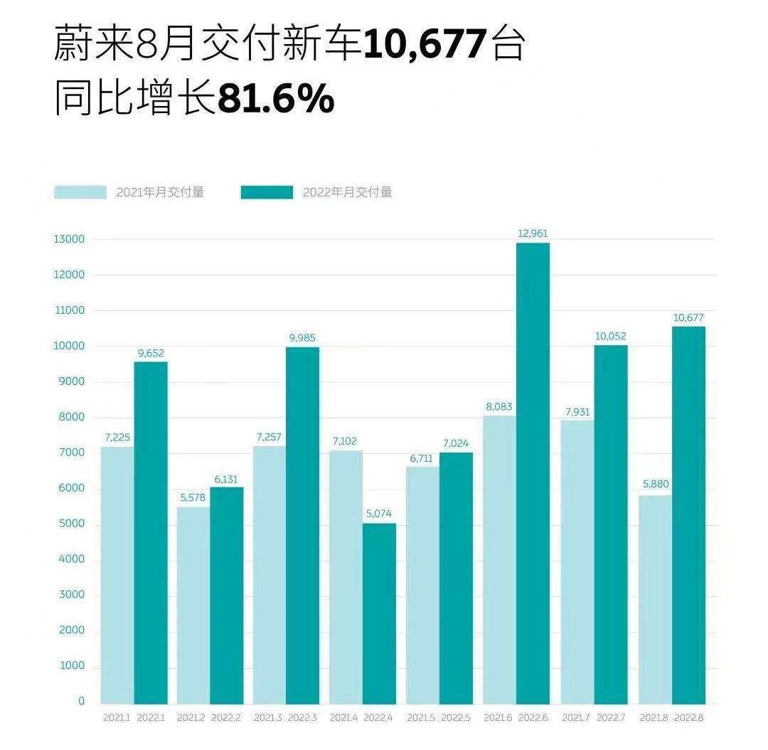 蔚来汽车在8月份的销量成功突破了1万台,共计交付新车10677台,同比增长81.6%,一举扭转了被理想、小鹏压着打的局面。截止到今年8月底,蔚来累计交付新车达71556台,增长还是比较明显的。