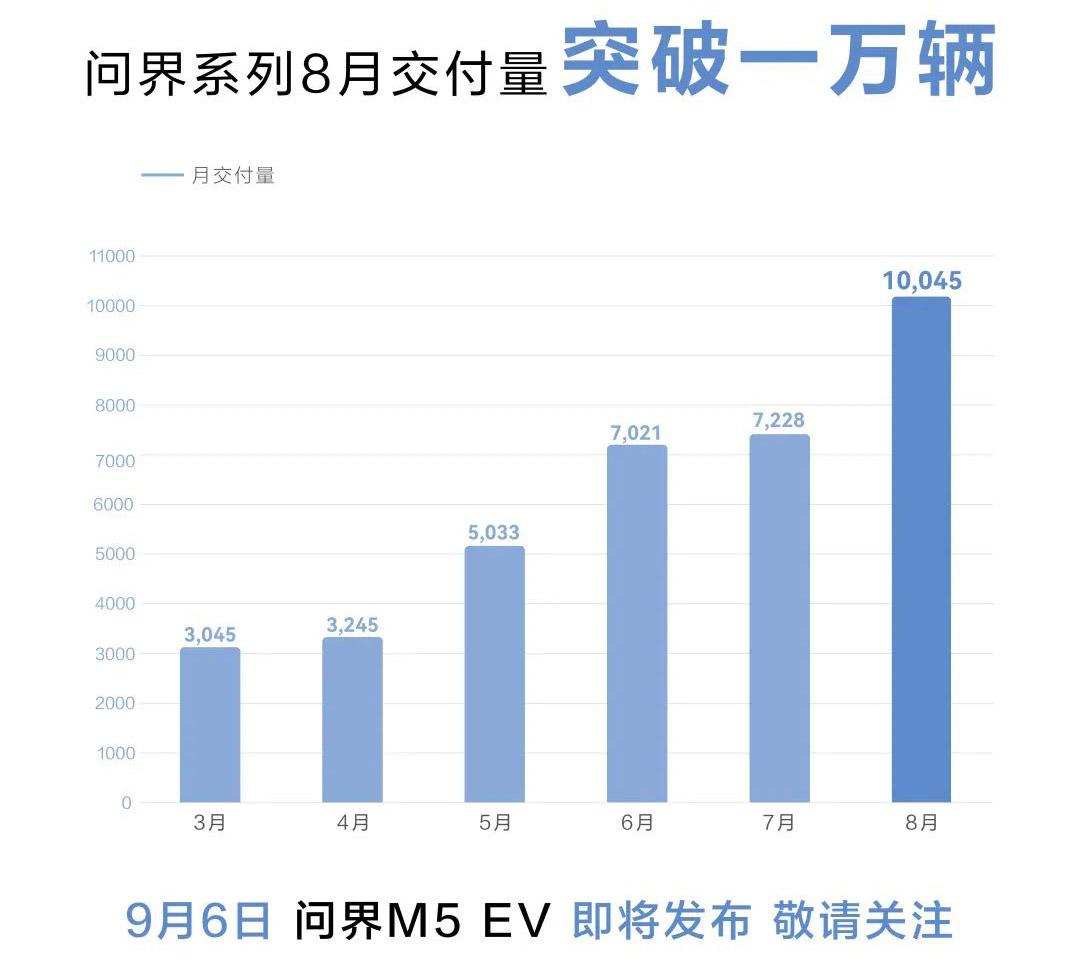 有了华为的加持,AITO品牌旗下问界的销量可以说是节节攀升,8月份交付新车更是达到了10045台,超越了不少造车新势力品牌,这也是问界首次实现月销量破万,对于一个新品牌来说殊为不易。
