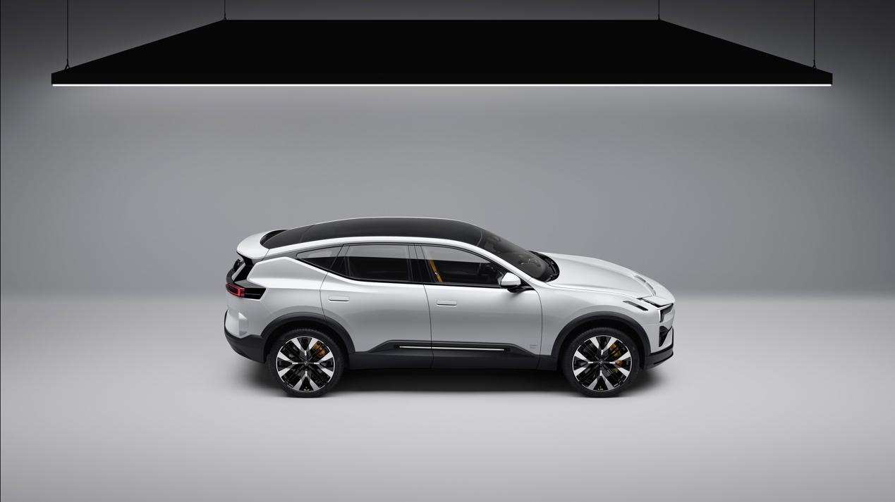 目前极星已经生产了两款电动汽车。首先是2019~2021年的「极星1」,其定位高性能电驱混合动力GT轿跑,这也是我见过最舍得用碳纤维做覆盖件的车型。其最大功率626 马力和峰值扭矩1000 牛·米,在NEDC测试规程下,其纯电动模式行驶里程135公里——是当时世界上纯电续航里程最长的混合动力汽车,售价超过140万,对标的是保时捷911车系、奔驰AMG车系。