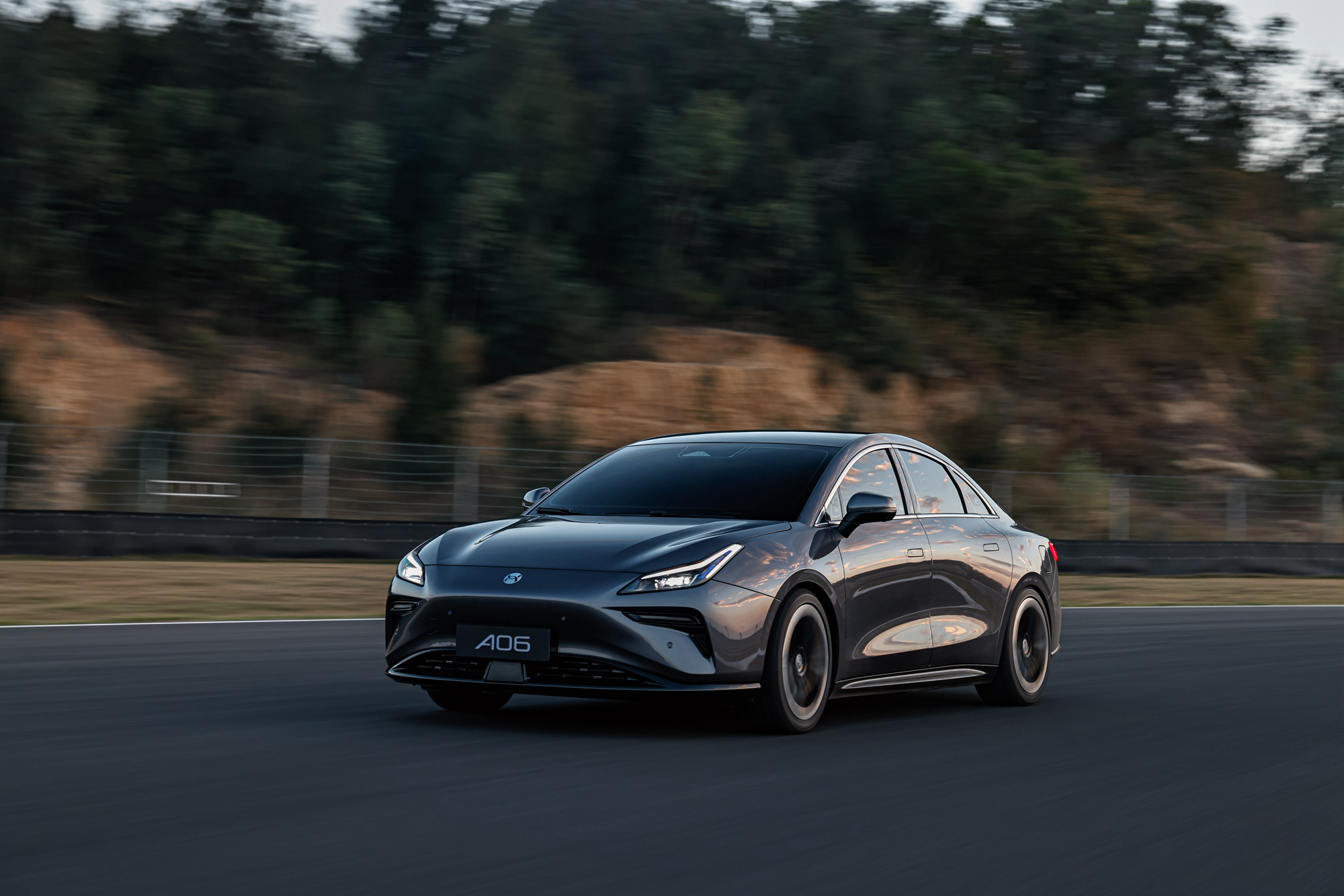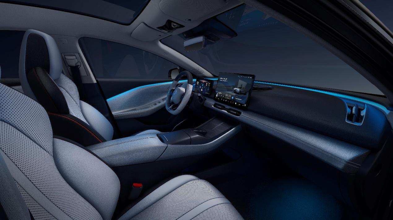 除了超越同级的安全与舒适性能,合创A06更是一台颜值与智能兼具的纯电潮跑。脱胎于合创矢量美学设计理念,A06采用“刀锋剑面”前脸设计,搭配饱满的运动宽体尾部,尽显速度与力量的潮跑本色。同时,合创A06拥有4965mm的车长和2850mm超长轴距,更将车内纵向和垂向空间分别扩展至1841mm和1243mm,搭配1.7㎡低辐射全景天幕笼罩,让人尽享舒适空间与辽阔视野。