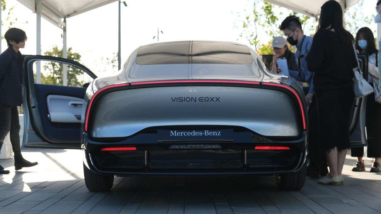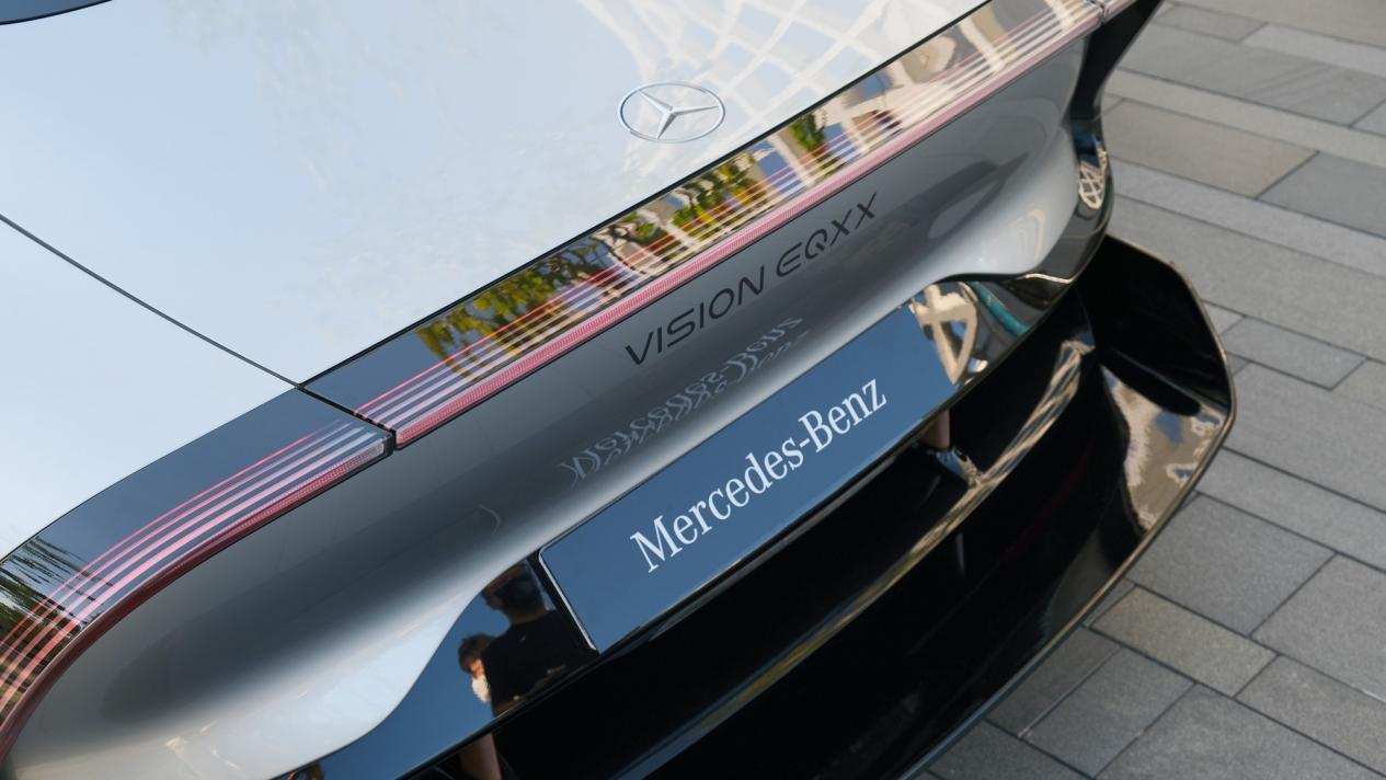 为了让奔驰VISION EQXX概念车实现超低风阻,奔驰为这台车打造了水滴造型的车身、设计了超平滑的外观、配备了可伸缩的主动式后扩散器,以及做了各种空气动力学上的优化,最终,这台车日后可量产的、可家用的车型同样拥有了0.17的风阻系数。要知道,此前奔驰全新的EQS拥有量产车最优的0.20风阻系数。