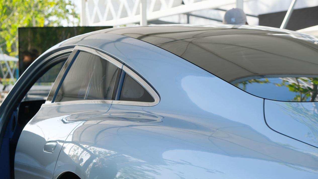 最具创意的部分来了,大家都畅想了很久的太阳能电池,终于被奔驰付诸实践。奔驰VISION EQXX概念车在车顶配备了117个太阳能电池,可为12V的电池系统供电,进而为导航等系统供电。这块太阳能板将新车的续航里程提高了2%以上,看似提升不多,但对于一台续航超过1000km的车来说,就能提供了长达25km的额外续航里程。