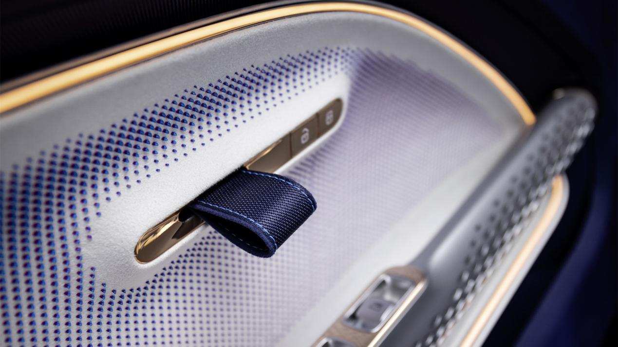 地毯采用100%竹纤维编织。虽然可能未来的清理会比较麻烦,但视觉和触觉都给人以非常高级的反馈。从这里可以看出,奔驰选择了这些可持续的、创新的、高性能的材料,是希望取代目前汽车行业中广泛使用的石油和动物产品,从而让产品和电气化的环保愿景达成高度的一致性。