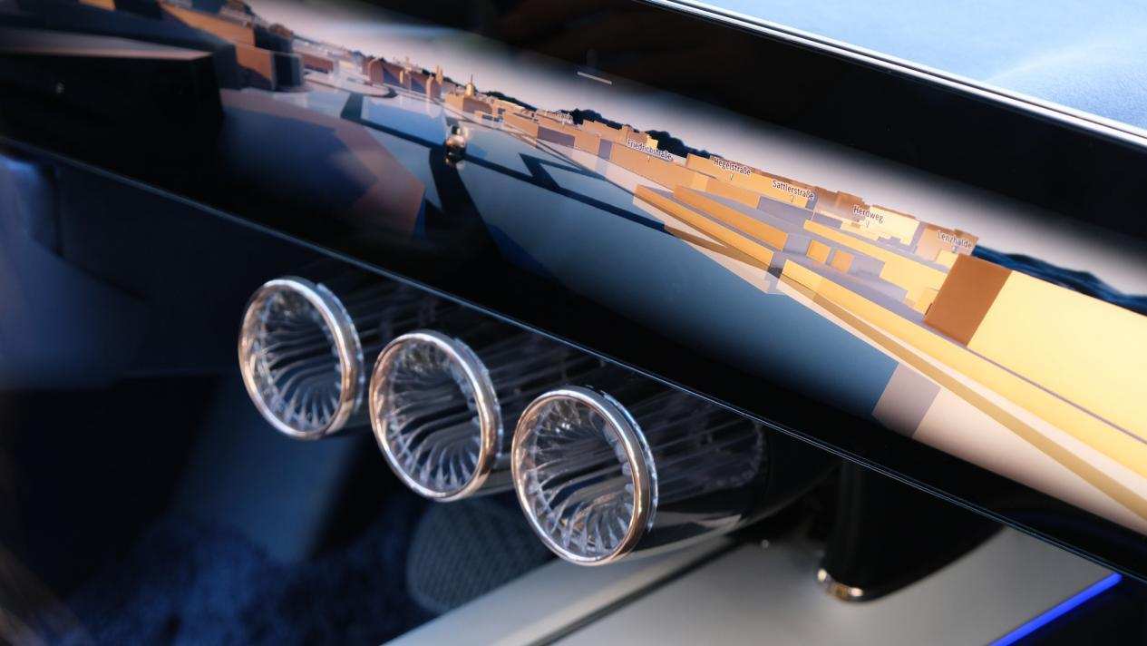 此外,智舱系统还引入游戏引擎和全面优化用户界面。研发团队更是跨界合作,联合开发了首款可与该尺寸屏幕兼容的3D实时导航系统,在3D城市视图中,可将卫星画面放大至10米高度,勾勒出全新的数字豪华世界。