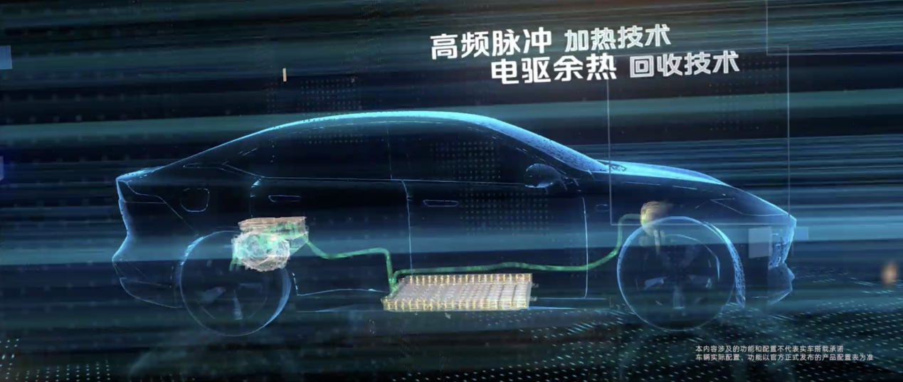 不过说到这里,其实还没有完全分析完「原力」的全部技术点,因为最初提到的3个方向中,第3条还没回答,也就是极限工况(主要是极寒)的问题,而这恰恰是一个系统性问题,并不是单一地通过增程器或电驱系统来解决。故此,「原力」提供一套名为『微核高频脉冲加热』的解决方案,主要涉及到电池预加热和电驱激励两项技术,这里简单介绍一下其原理: