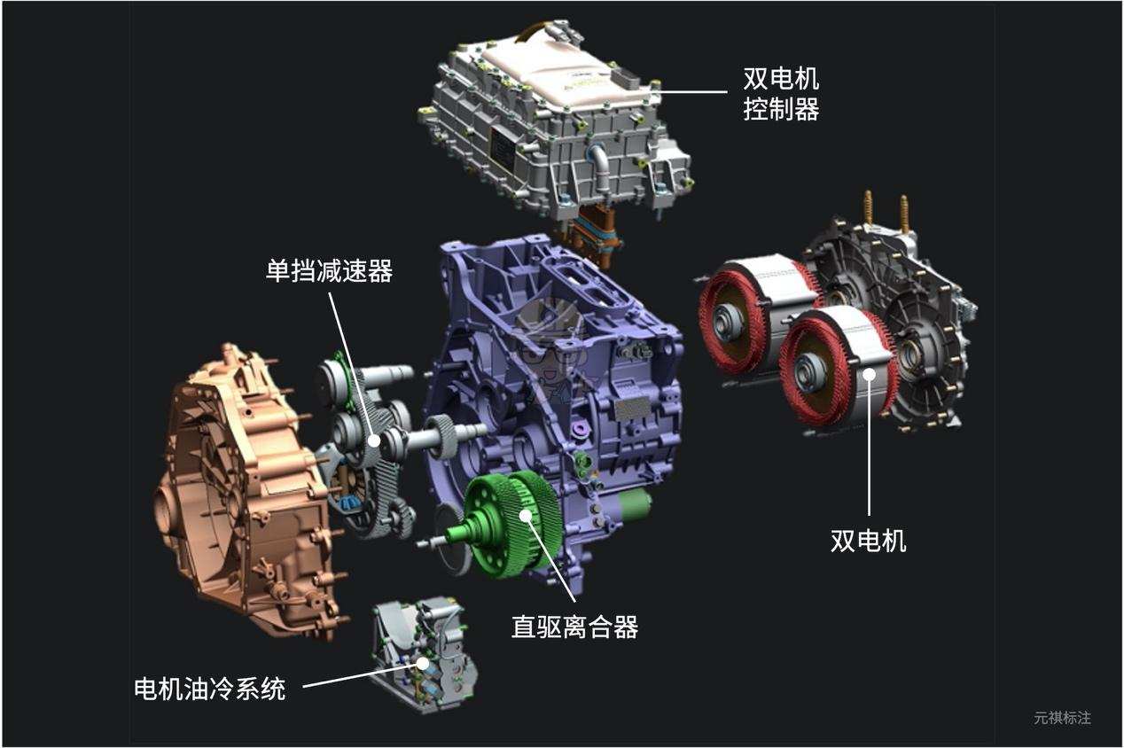 1. 「比亚迪DM-i」的「E-CVT」的结构最大特点就是一个字——『简』,没有复杂的「多挡位变速机构」,将更多结构重量留给功率更大的「电机」和「PHEV电池」;