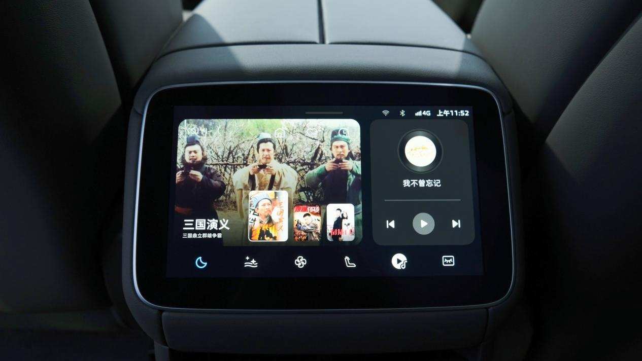 除了前排的巨幅三联屏,飞凡F7也考虑到了后排的娱乐体验,增加了一块8英寸液晶屏,能够控制空调、座椅调节等功能,最重要的,还是视频播放功能,对于有长途出行,以及有小孩的家庭用户来说,这无疑是一项安抚情绪的利器,当然屏幕尺寸要是再大一些就更完美了。