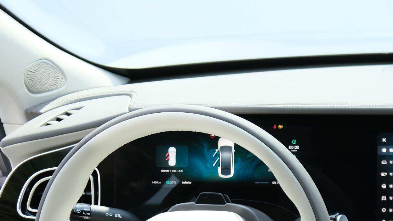 在飞凡R7上大放异彩的AR-HUD此次在飞凡F7上并非标配,也不能选装,按工程师的说法,主要是受限于座舱的空间限制以及芯片的工作算力。对于我这种习惯或者期待HUD这项配置的用户来说,确实算是一项小的缺憾吧。