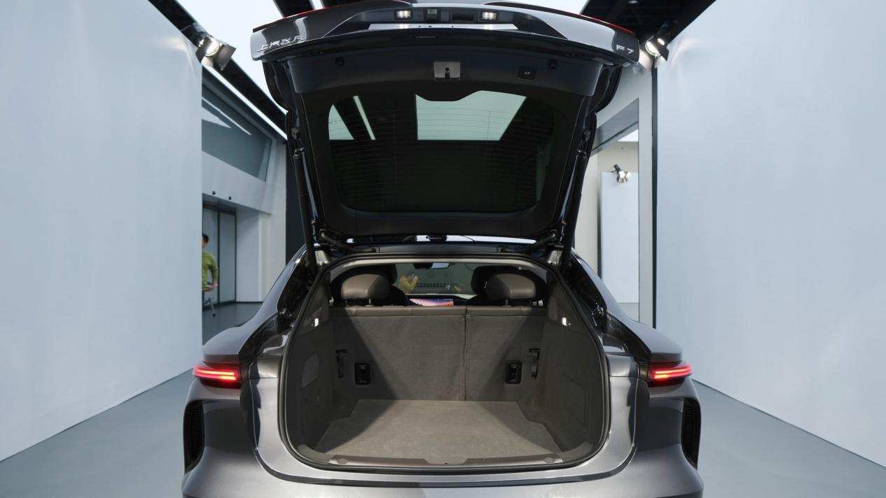 对于家用取向的车型来讲,后排空间的拓展能力是不能略过的考察项。不得不说,在掀背设计的帮助下,飞凡F7后备厢的开口角度很大,空间表现也非常可观。