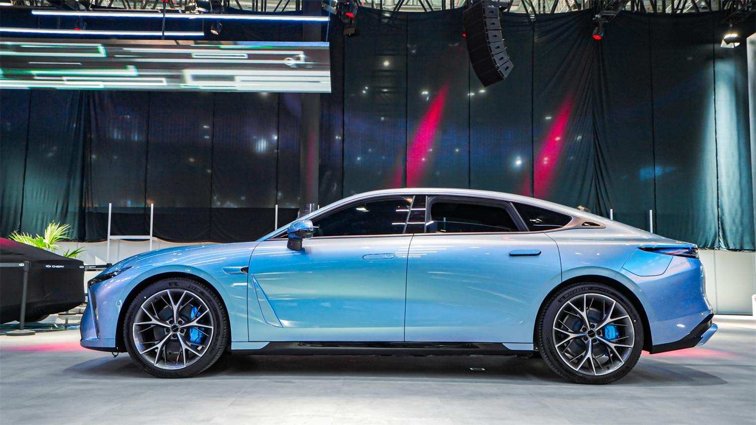 超舒适中大型电动轿车星纪元STERRA ES以蝴蝶为设计灵感,横向贯穿式大灯结合ISD智能灯光交互形成蝴蝶主题概念,辨识度拉满。
