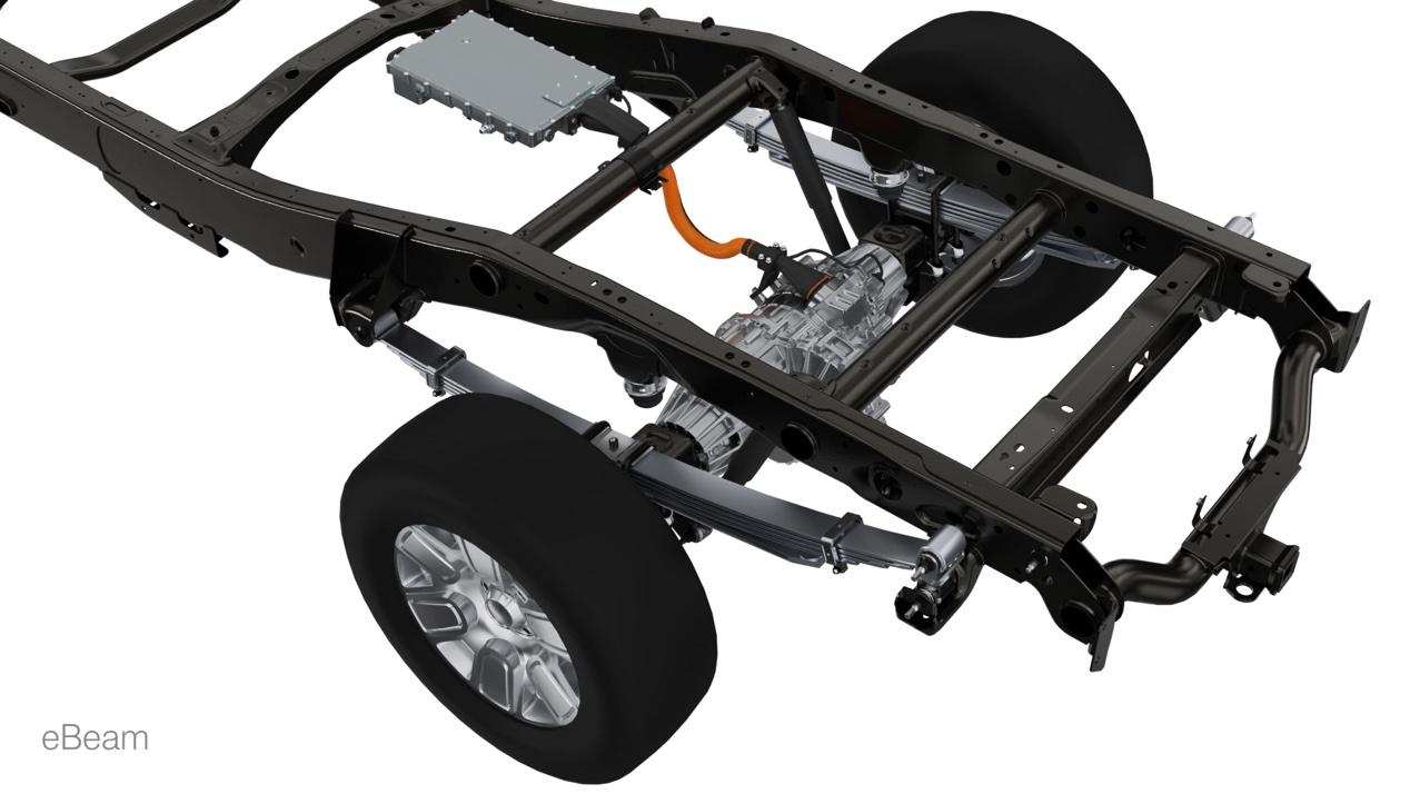 我们聊回技术,「EtelligentForc」主要由此前提到过的「eDrive Mid+」和「eBeam」两套电驱技术构成。而这次「eDrive Mid+」被放在了前桥,而后桥使用的是「eBeam」电驱技术。