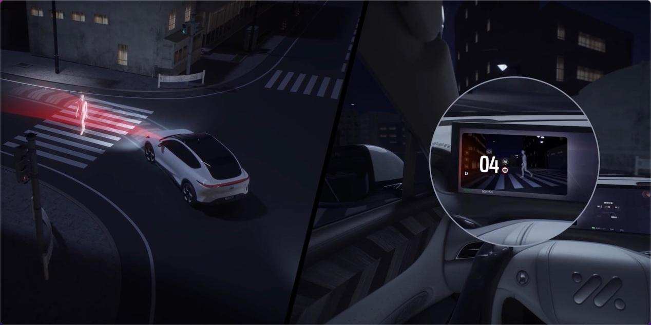 以上三大智能化细节功能中,『一眼余光感知』令人印象深刻,就目前智己汽车公布了几个核心场景应用来看,『导航路口光效引导』、『BSD侧盲区光效提醒』、『A柱补盲/侧视补盲/后视补盲』(上图)等功能,能通过智己车型上所搭载的海量传感器进行驾舱融合影像,帮助驾驶员在多种转弯场景时,更有效的躲避突发的交通干预者(比如过路行人、玩耍儿童、外卖小哥等),让驾驶既安全又轻松。解决新手司机开车时,心理压力大的痛点。