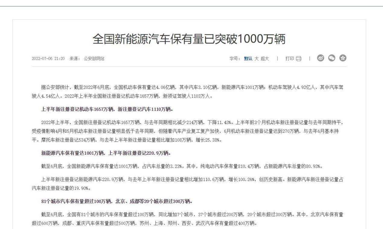 当然这并不是谁突然中了彩票,更不是谁瞬间实现财富自由的投资回报。2000万是7月3日中国新能源汽车量产下线所达到的新“里程碑”,而从1000万来到2000万辆,我们只用了将近1年的时间。