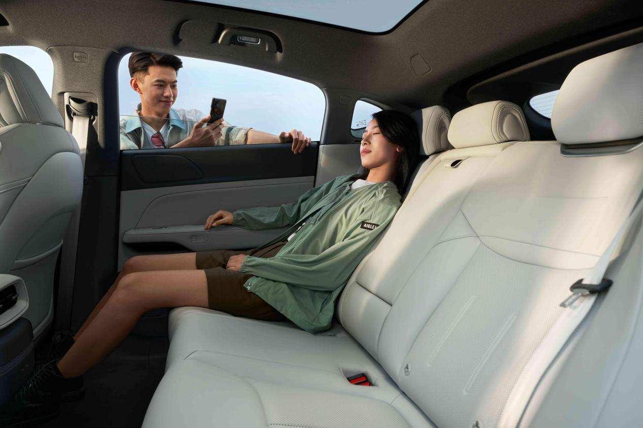 另外当我们坐进车内的时候,能够明显感到两款车型64mm的轴距差异,所带来空间体验上的不同。比如别克E4和小鹏G6的腿部空间虽然都比较宽敞,但后者的坐垫长度略短,乘客会出现大腿悬空的情况,久坐更容易产生疲劳,这方面别克E4凭借着更长的轴距,能够兼顾乘坐的舒适性和腿部空间需求,实际体验更佳。