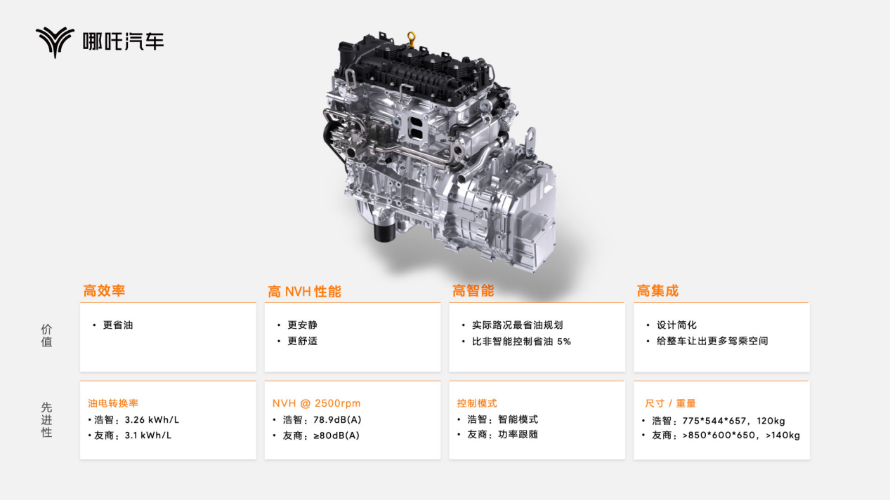说到未来的研发规划,哪吒汽车陈领平很有底气地介绍道『浩智增程实现了量产一代,开发一代,储备一代。』据悉,当前哪吒汽车采用的是HZ1.0增程器,今年11月将升级到2.0版本,整体功率表以及发电量提升,在噪声抑制也有更好地表现,2025年哪吒将带来3.0版本,全面满足各大增程电动车的需求。