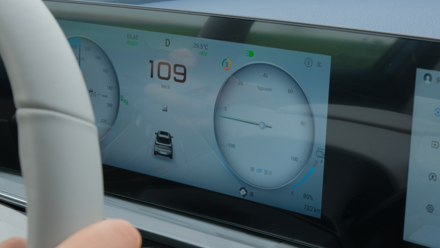 全程主驾24度空调,副驾22度空调,3档风量。动力输出采用「HEV」模式。不过,油耗的结果我们准备放在最后,先说说这台车开起来怎么样。