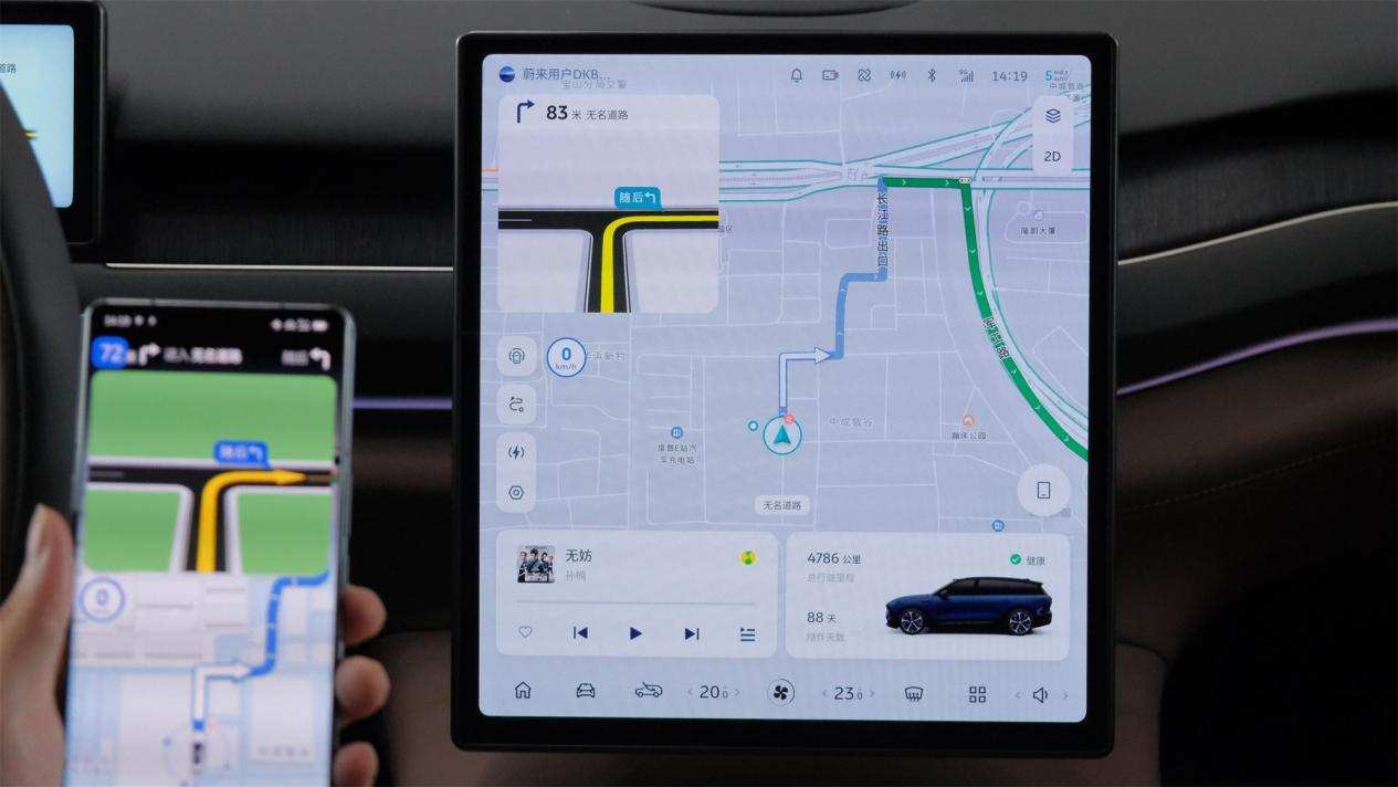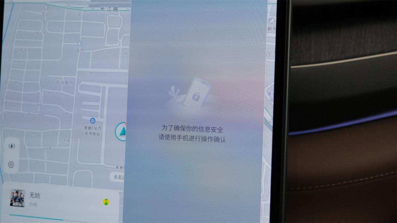 在隐私保护方面,蔚来也是花了心思的。当检测到副驾驶有人时,车机端分身的浮点会被上锁。