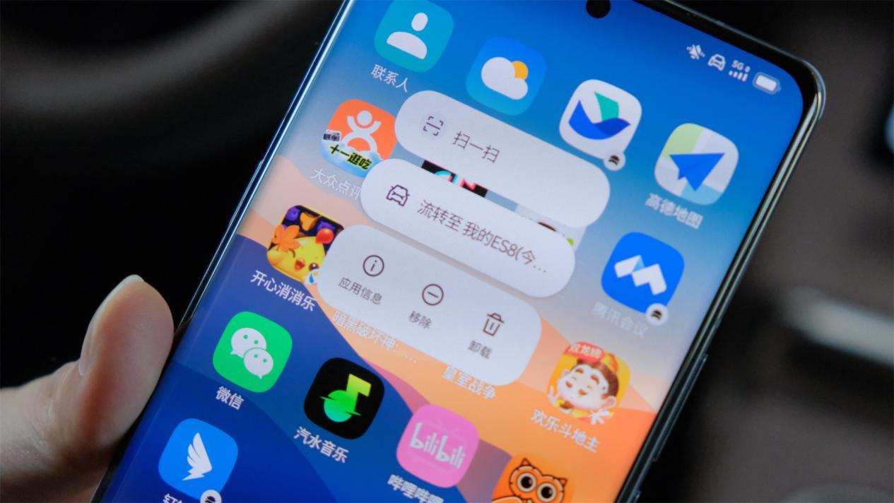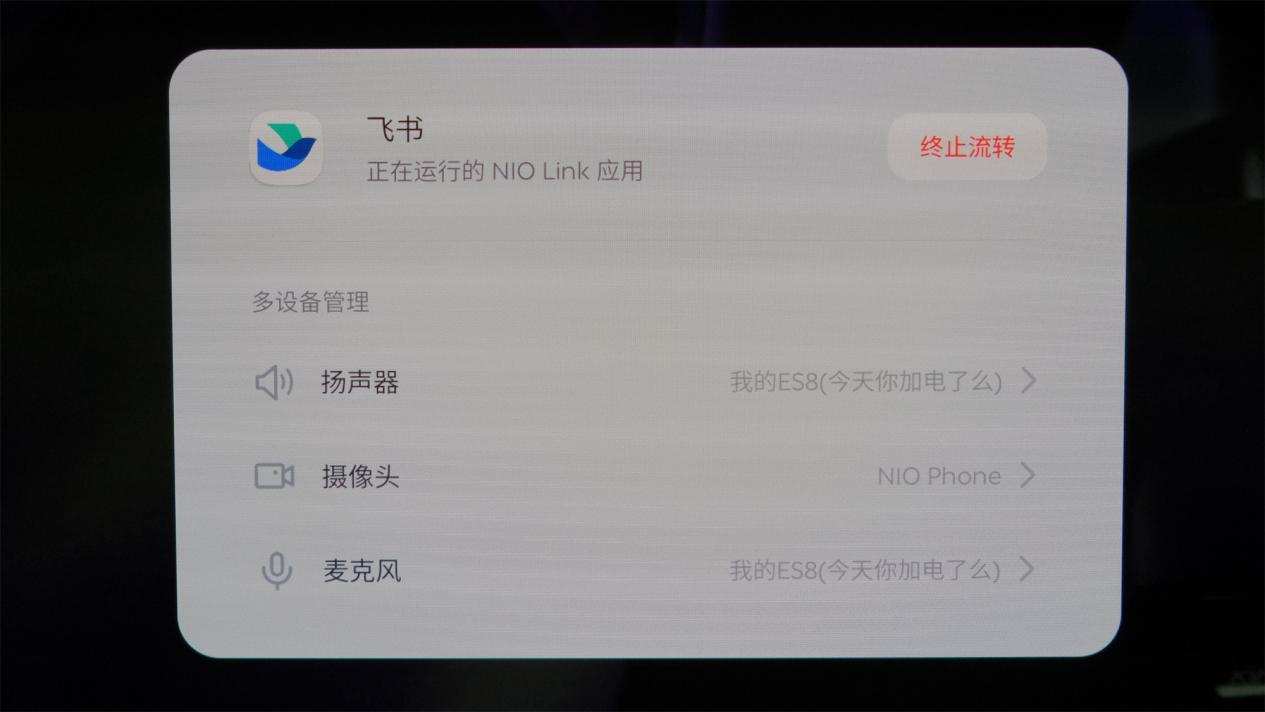 长按它,点击「流转到我的ES8」,你就可以进入欢乐的车机会议时间。