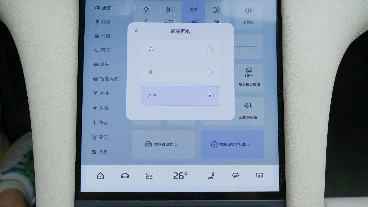 和大部分电动车不一样,LS6的动能回收设定为了关、低和标准三档,我们体验下来,就算是回收等级最高的标准档,也不会出现拖拽太严重的情况,驾乘的体感还是比较柔顺的。
