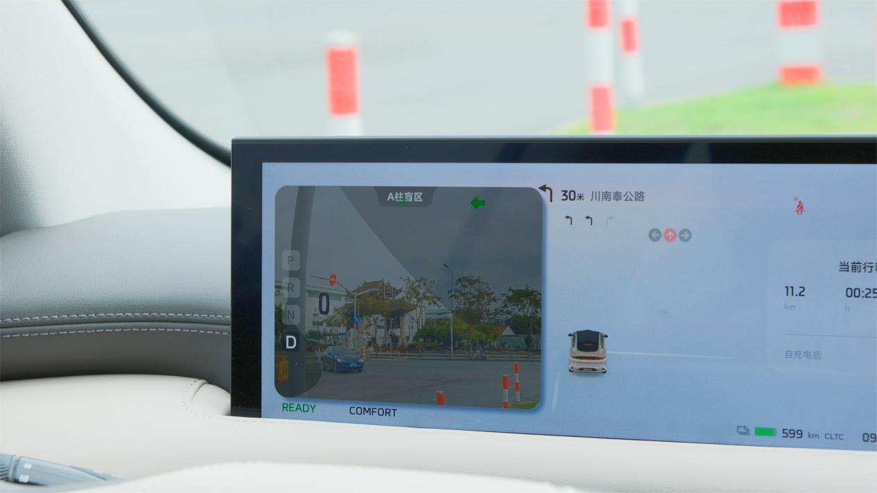 为了应对转向过程中产生的盲区,LS6在开启转向灯后,会在仪表盘的对应侧显示盲区画面,并且低速和高速会显示不同的画面。比如,我们打左转向灯,在低速时,显示的是A柱的盲区画面,而高速时,显示的是左后区域的盲区,这一点相当人性化,因为以前开A柱较粗的车型,转弯时我的脖子都需要做一套新疆操。