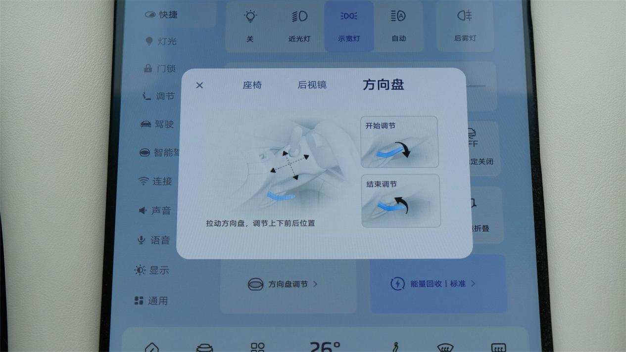我们发现中控屏内,LS6给到一个方向盘调节的选项图标,让我们误以为这台车是电动方向盘,但这台车实际上是手动方向盘。所以图标点开来,里面是『教你如何手动调节方向盘』,唯一的解释是这台车可能有电动方向盘的版本,所以手动版也延用了这一套UI布局。但有一说一,就算要给到说明书,也没必要将其放到如此优先的控制层级上,有种『压轴菜是大米饭』的无力感。