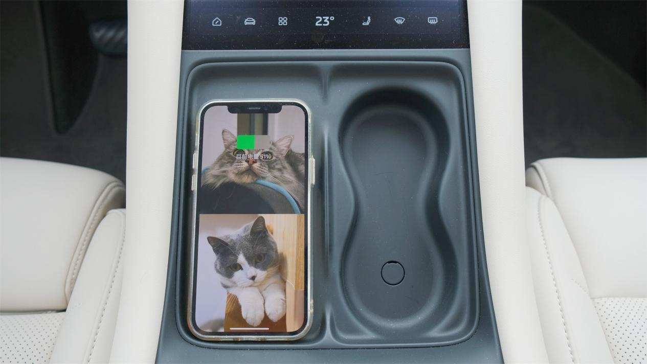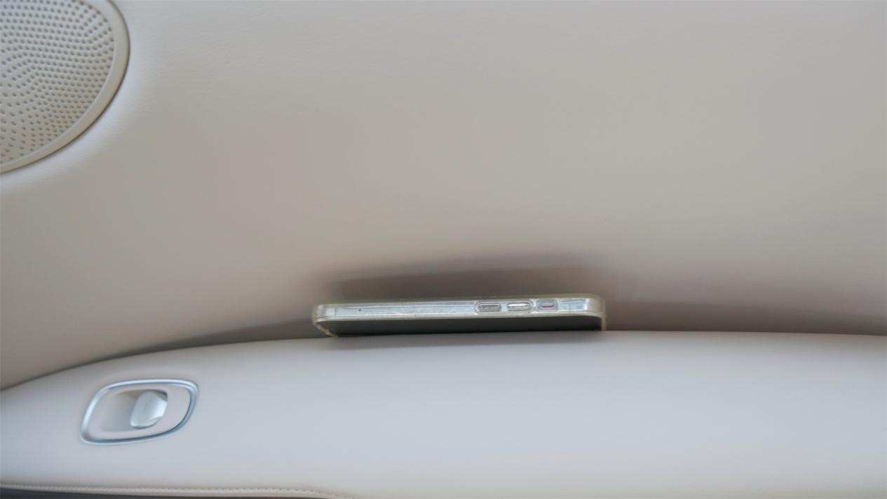 下方的面板上有无线充电区和墨镜放置区,就是『坑位』稍微有些浅,颠簸路况下容易划落出来。