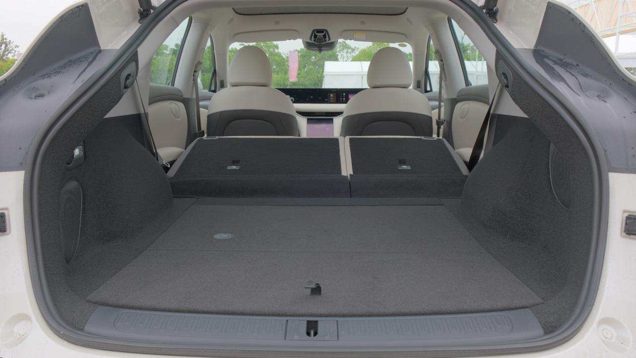 常规状态下后备箱空间为596L,后排座椅放倒后空间最大可扩展至1571L,配合全景天幕,躺着看星星看月亮,从诗词歌赋谈到人生理想,妙。