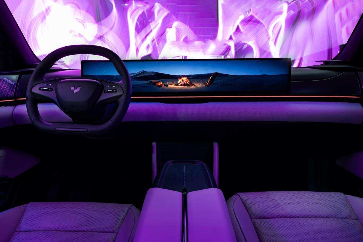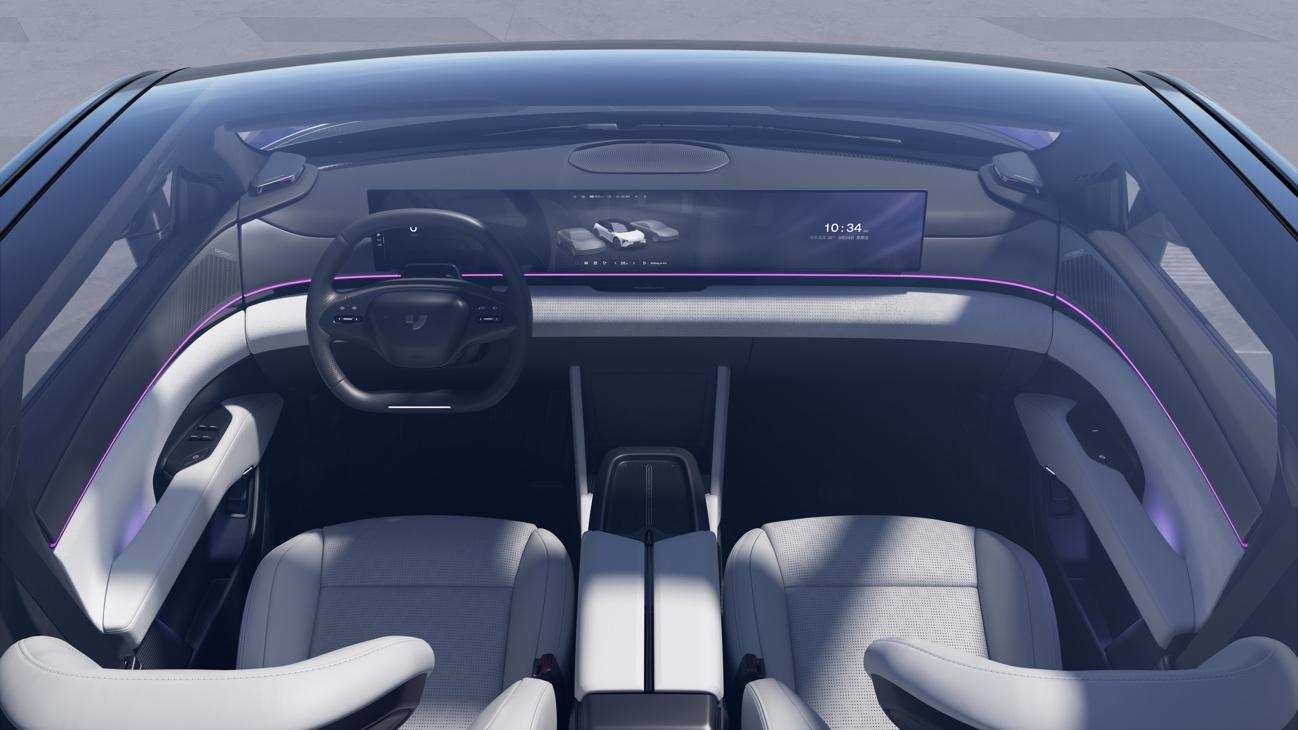极越01的内饰秉承机器人美学设计语言,取消绝大部分物理操控按键,并提供了『宇环黑、宇烁白、宇幻紫』三种内饰颜色。