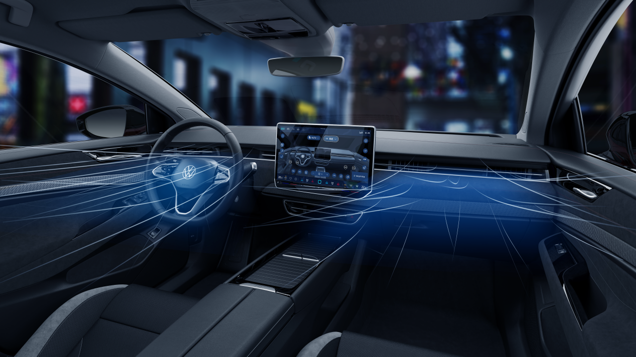 在疫情后,大家对于车内的环境安全更为重视,汽车的车内用料及空调系统等也在不断升级。ID.7 VIZZION依照中汽中心CA-HII中国汽车健康指数五星标准进行研发,通过采用顶级环保材料、实时空气监测、双层滤芯、配备负氧离子发生器等多项科技创新,使得车内甲醛含量符合母婴安全标准,达到国际标准值的十分之一,以及最严格芬兰室内S1限值标准的四分之一,保障车内环境安全。