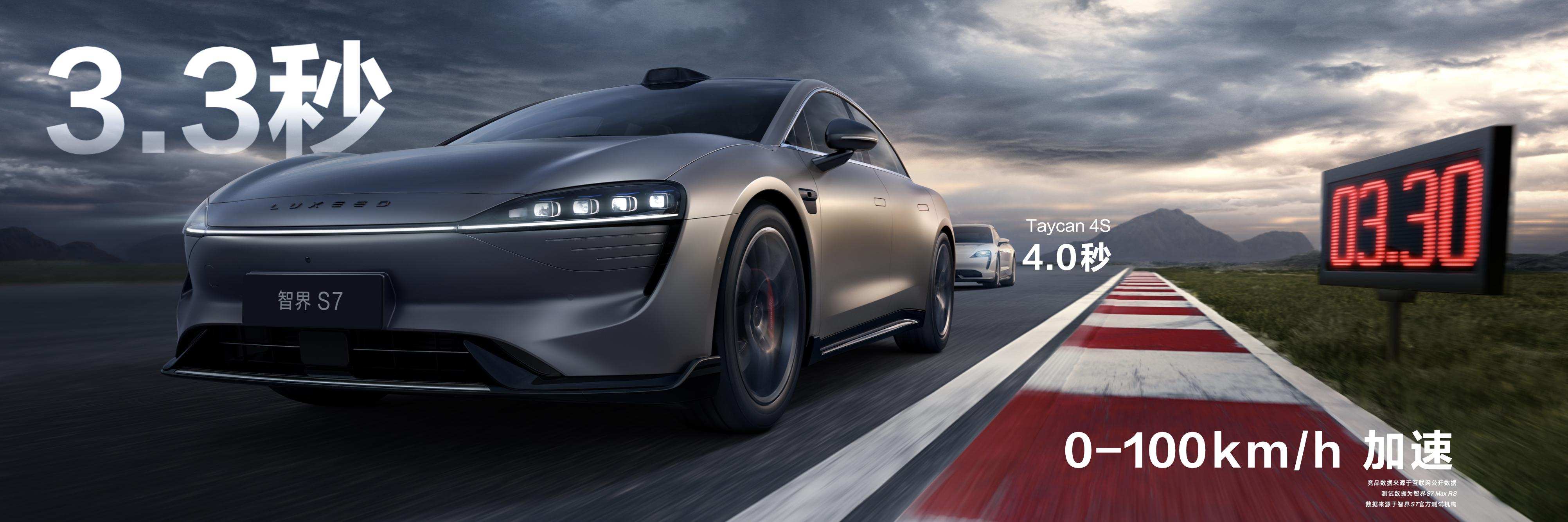 智界S7长度4971mm,轴距2950mm,定位中大型纯电轿车,首发搭载华为途灵智能底盘和HarmonyOS 4智能座舱,还有HUAWEI ADS 2.0高阶智能驾驶辅助系统,以及800V充电和800km+续航;百公里能耗12.4kWh,零百加速3.3秒。