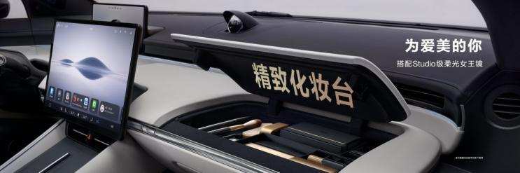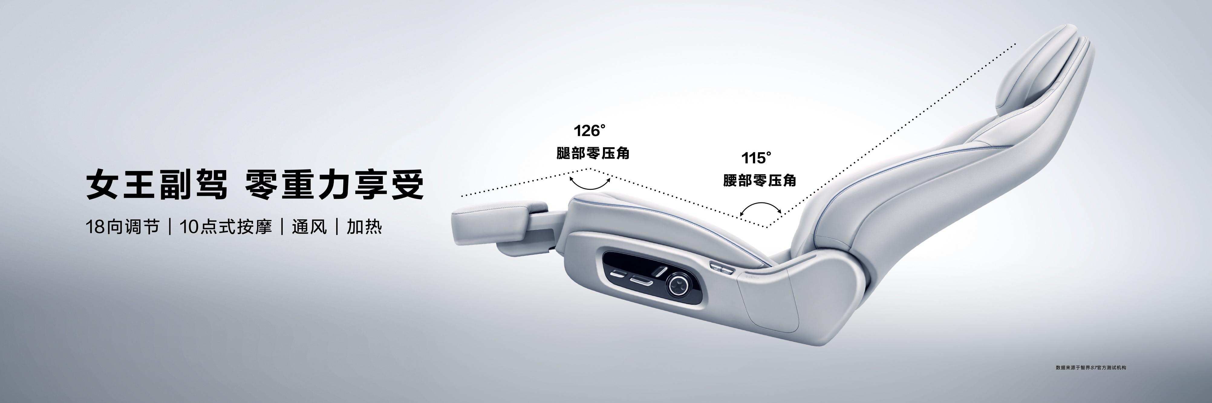 在冰箱沙发大彩电形成了某种「政治正确」时,智界S7已经把化妆间也搬进了车里。由于中控台采用了游艇式设计,整个仪表台形成了更大的平台空间,副驾面前就出现了一个可当做小桌板的区域,而在「桌面」下还隐藏了一个化妆箱,属于办公化妆双向奔赴了。而女王副驾除了按摩通风加热和腿托之外,还可以实现零重力躺倒,也就是说整张座椅都会向后仰倒,从而实现真正意义上的躺平。