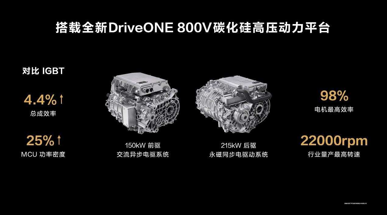 而接下来的部分,『含华量』就陆续提高了。比如智界S7搭载全新DriveONE 800V碳化硅高压动力平台,前交流异步电机+后永磁同步电机四驱组合总功率365kW,拥有行业量产最高转速22000rpm,0-100km/h加速仅需3.3s。高效动力系统配合轻量化车身、超低风阻及能量回收策略,让智界S7百公里综合电耗仅12.4 kW·h, CLTC综合续航里程可达855km,800V超级快充充电5分钟增加215km续航。