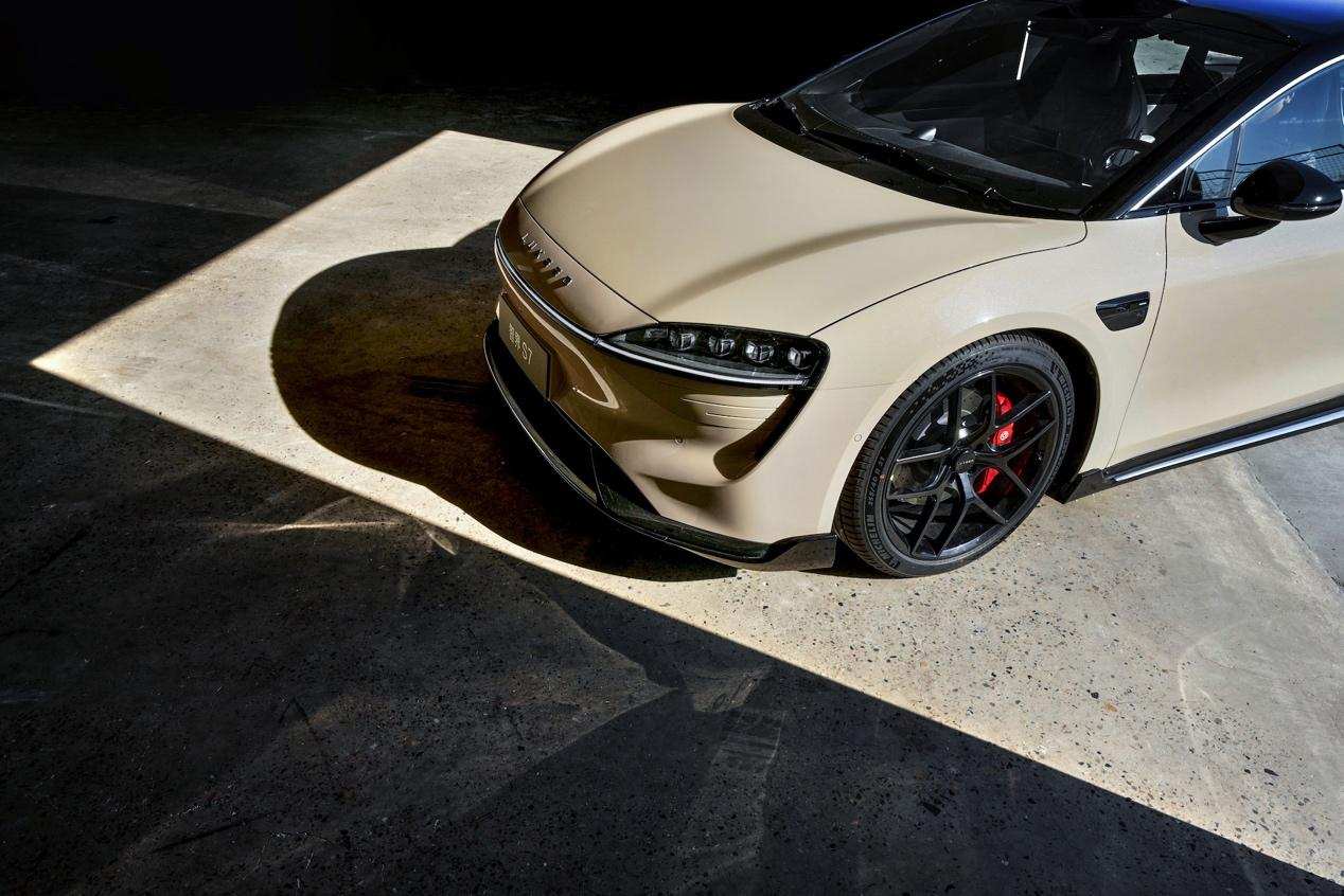 侧面腰线采用『天际线设计』,将车身一分为二,整车更显修长优雅。车身黄金曲线在塑造0.203Cd超低风阻的同时,极具力量感。2.6㎡超大全景天幕一直延伸到后挡风,与车身融为一体。无边框车门、无边框后视镜、隐藏式门把手、能量水晶尾灯等细节则进一步提升了车辆的时尚感。
