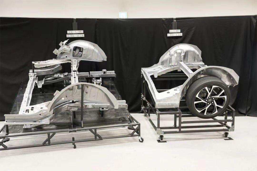 左则为钣金零件组成的后部模块,右侧为一体化铸造模块