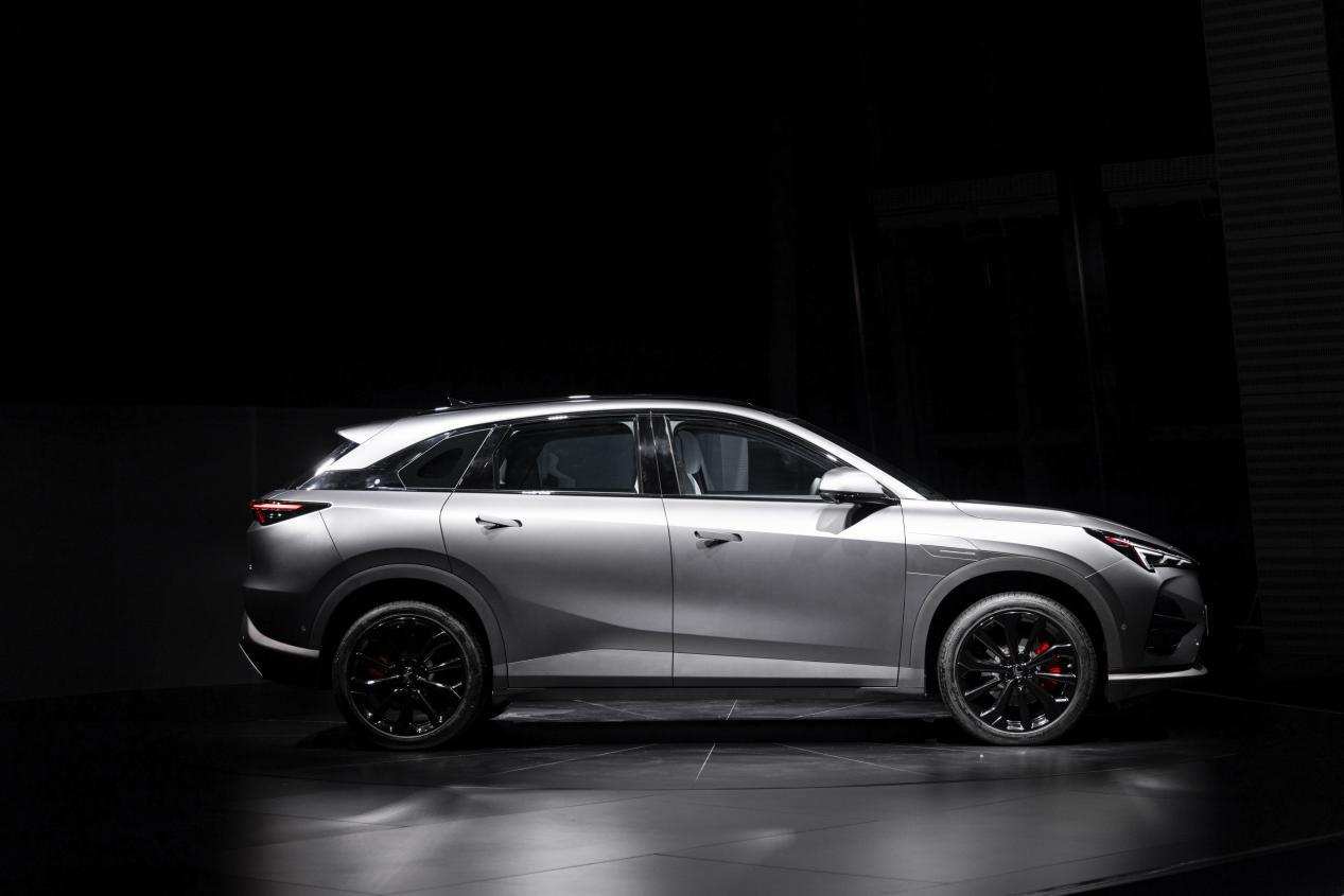 来到车身侧面,新车搭配多辐式熏黑轮毂以及红色涂装卡钳,具有浓厚的运动气息。同时,新车还采用隐藏式车门把手,进一步优化车身设计并降低风阻,其风阻系数仅为0.245Cd,这样也是目前中国纯电SUV产品最低的风阻系数。