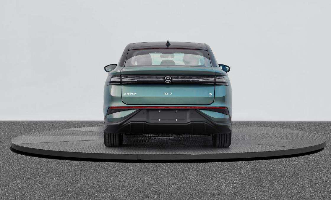 尾部设计方面,ID.7 S利用立体悬浮式尾灯来突出科技感。尾灯内部采用了交错排列的线性主题灯组元素,与熏黑尾灯融合碰撞,点亮后仪式感满满。下包围运用三角形几何元素的设计,时尚动感。