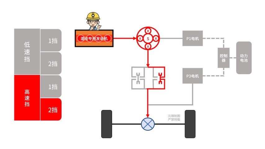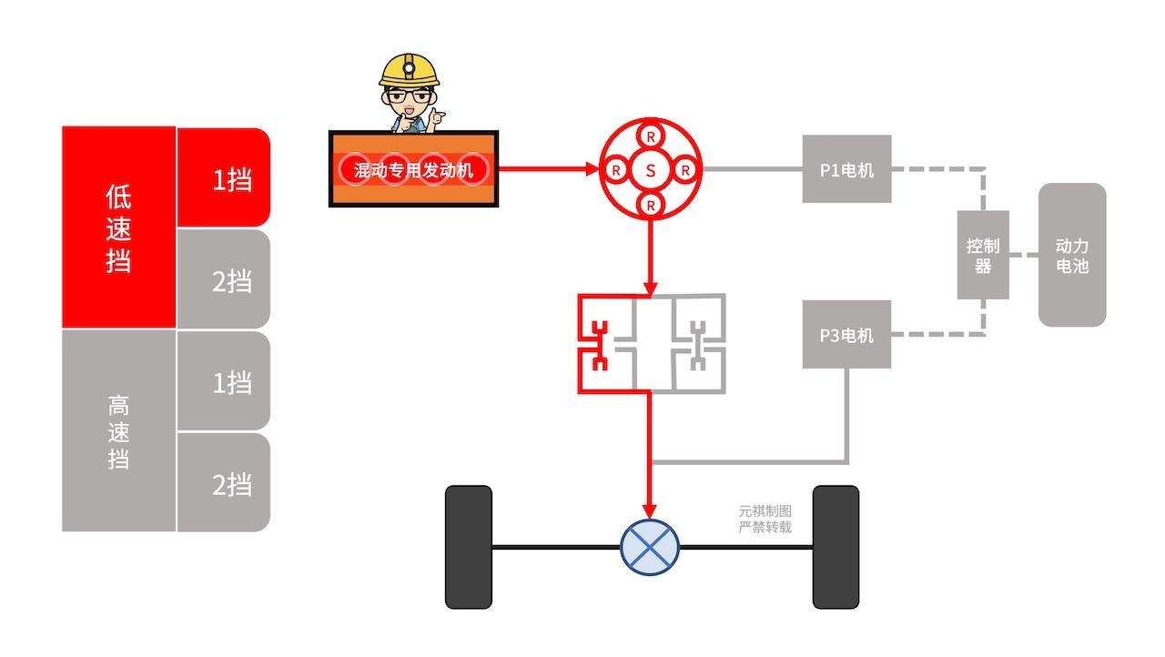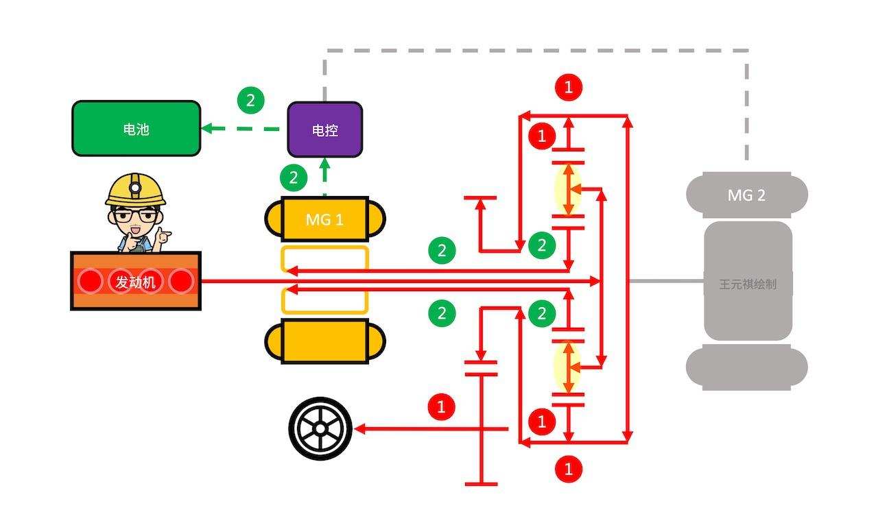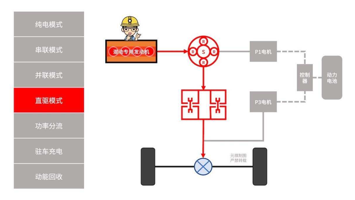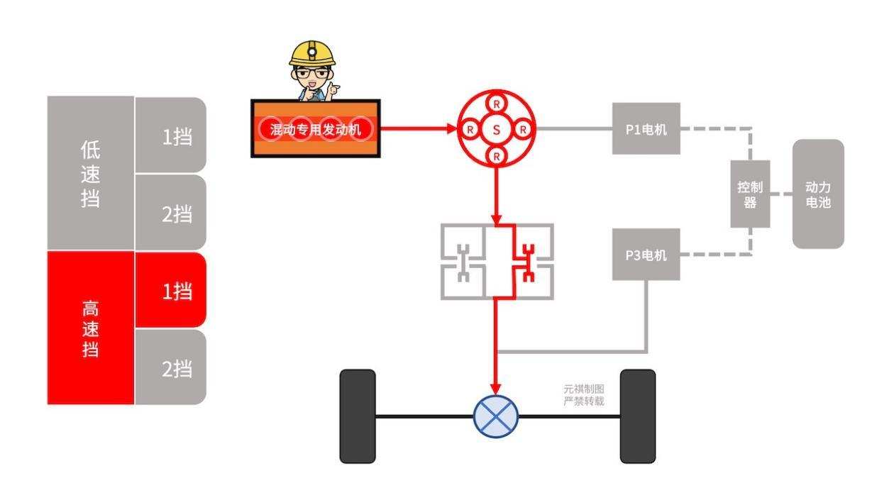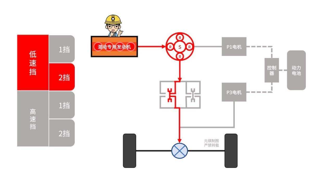 马赫DH-i变速原理(直驱模式)示意图(动图)