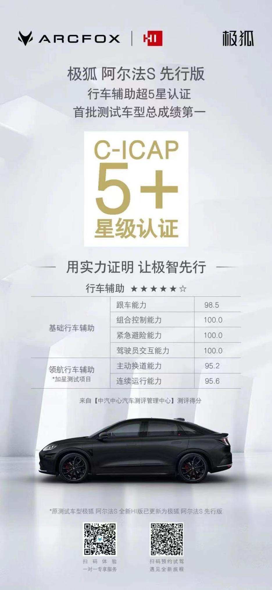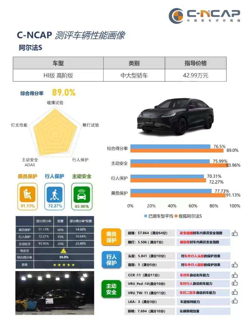 优秀用实力说话,阿尔法S先行版也获得行业多次权威评测认可,中汽研2021版C-NCAP得分行业第一,“五星级”安全评价、中汽研2022年度五星健康车、中汽中心汽车测评管理中心行车辅助超5星认证,首批测试车型总成绩第一。