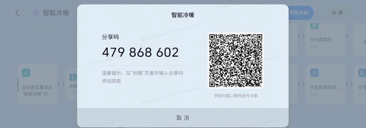 蓝山、高山还新增了呼声很高的“技能智造分享”功能,用户进入技能编辑界面即可编写用车技能,点击分享即可生成分享卡片,好友可通过分享码获取此技能,对用户社交也有不小的推动作用。