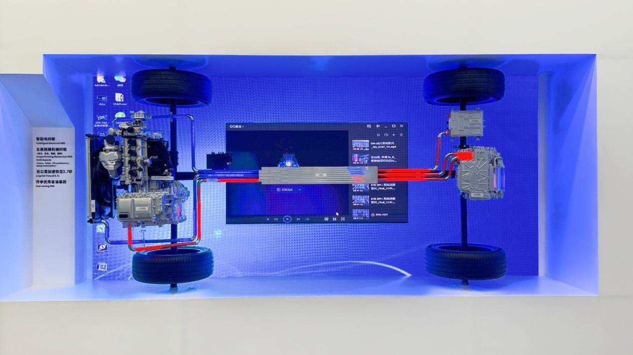 而有趣的是DM-p,在此前专栏中,我曾写过DM-p是第三代DM的升级,仍属于P34架构,发动机后带双离合变速箱,而发电主要靠置于发动机前端的P0电机(比亚迪的BSG功率可达25kW),而从2023年我在比亚迪总部参观时,却发现DM-p已悄然发生了变化。