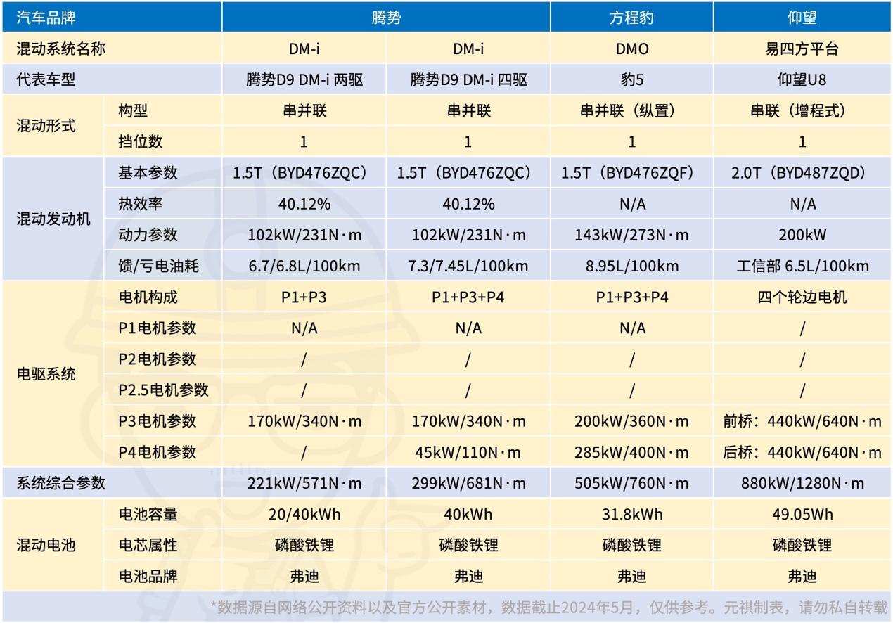 这里要特别提一下仰望,其采用的是一套增程式的动力总成,官方并为给这套总成划分或定义一个动力总成的序列,而是将其归纳在易四方平台中。