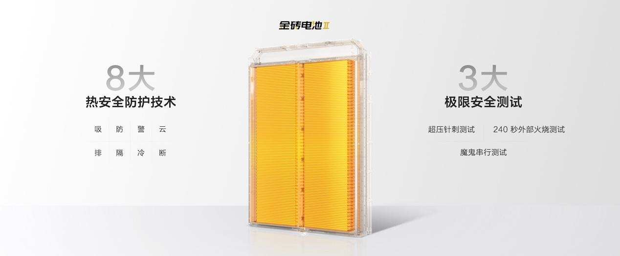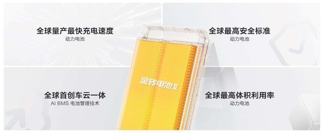 同时,第二代金砖电池更有全球最高电池安全标准,采用8大热安全防护技术,通过电芯超压针刺实验、240秒火烧实验,以及整包六大极端工况串行测试;另外还采用了全球首创的车云一体AI BMS电池管理技术,通过云端大模型和电池预警模型,提升电池电量估算精度,提前识别风险车辆,提升电池全生命周期的健康监测精度,还可以合理引导用户习惯,延长电池使用寿命。