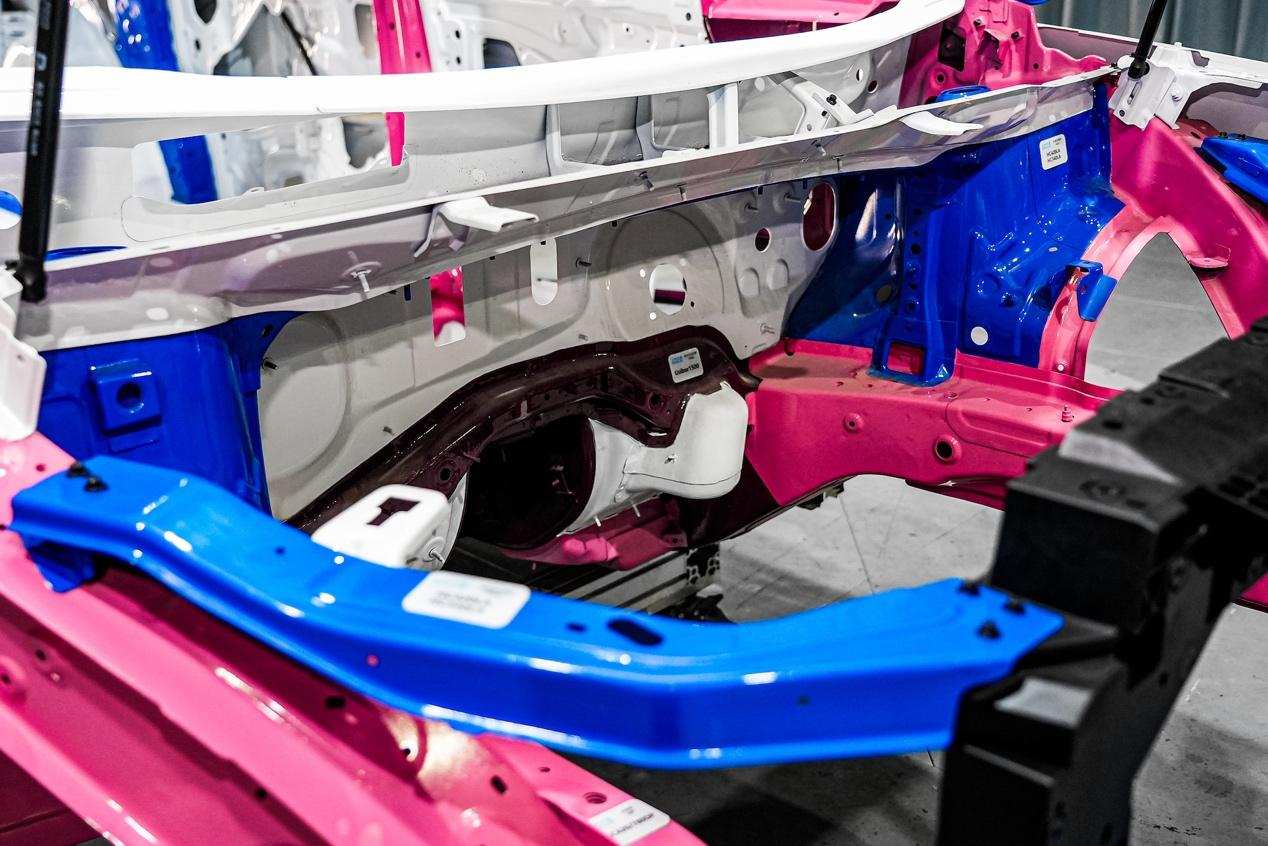 此外,在关键节点上采用了复合材料车身解决方案(CBS技术),填充了特殊的高分子材料,以缓冲冲击。它有两个优势,一是轻量化后,提供的刚度和强度很高,可以代替一部分金属,从而产生轻量化效果。另外,它在安全性上面能够提供非常好的缓冲。