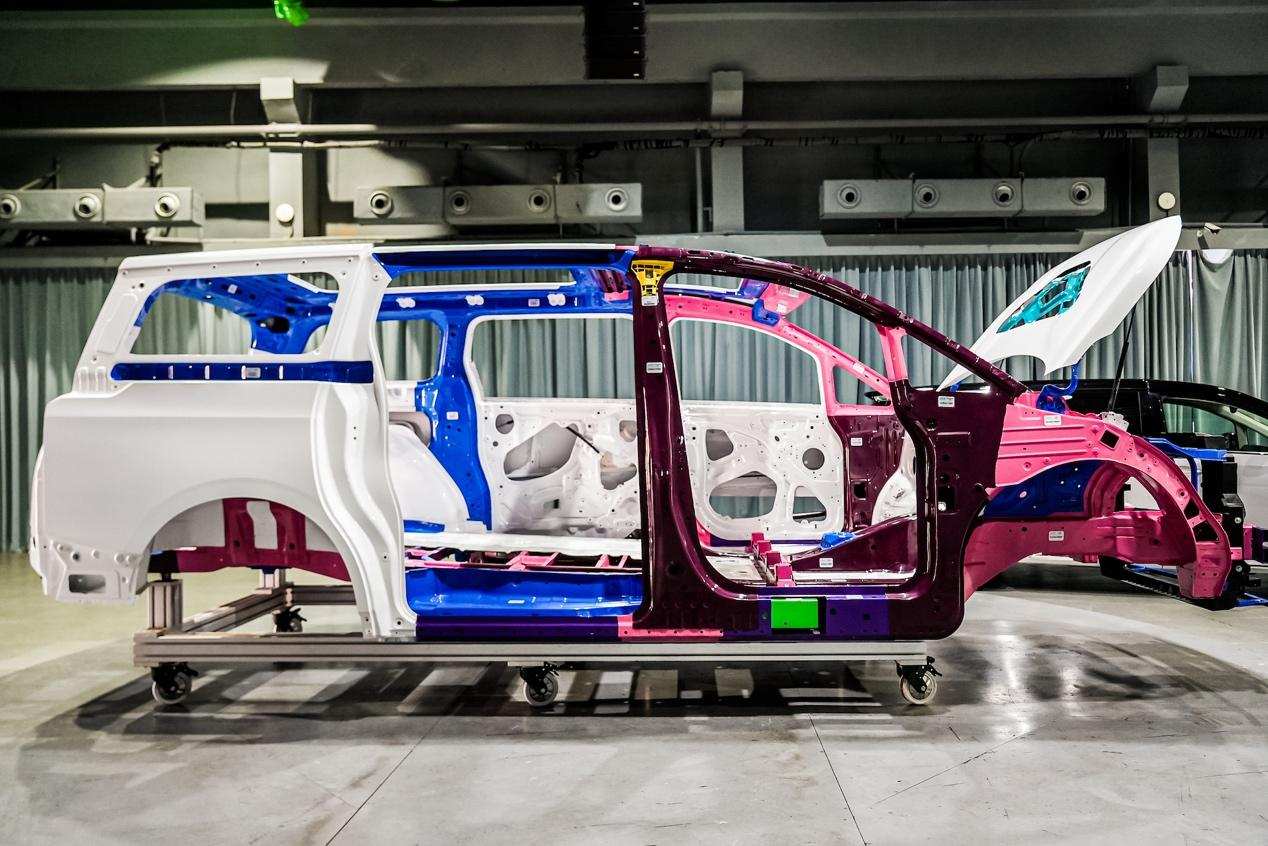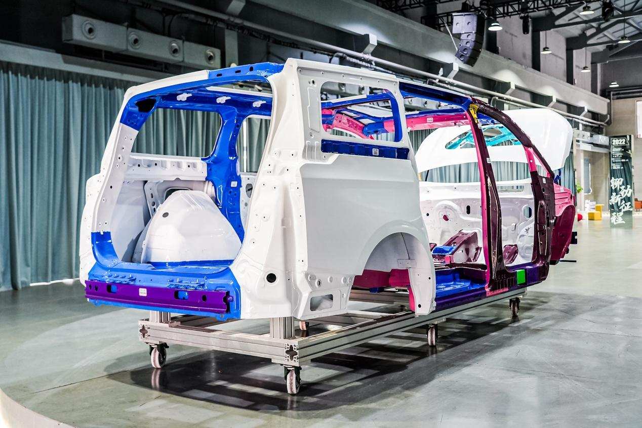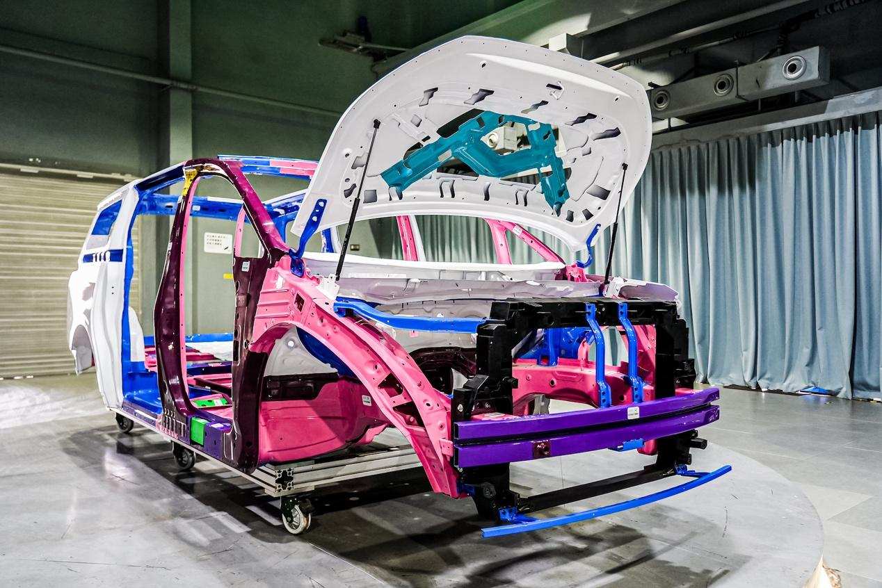 首先是车身整体框架设计。因为在碰撞时车身肯定会变形,为了保证足够的生存空间,以确保人坐在座位里不会受到外部侵入的伤害,车身框架进行了独特的截面设计。此外,在门里做了横梁强度设计,让门像盾牌一样,在受到外部冲击时将外部冲击物拦在车以外,使里面的人比较安全。