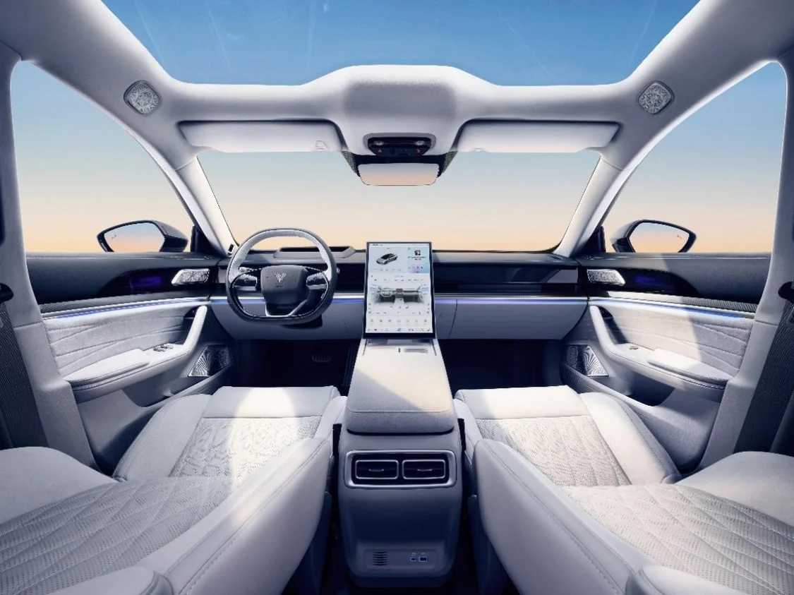 智舱层面,哪吒S猎装还延续『冰箱彩电大沙发』的高阶配置,配色上提供铁骑灰和刺客黑两种方案,后续还会追加一款蓝色内饰供用户选择,我们猜测可能是之前已经应用于哪吒GT上的那一套。
