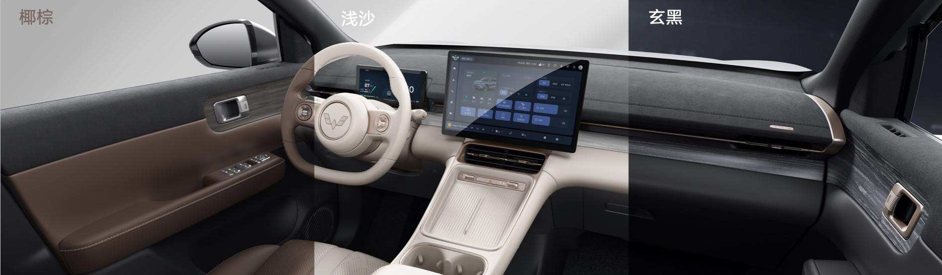 五菱星光S的内饰设计语言简洁而有温度,注重细节和品质感。新车提供了浅沙、玄黑、椰棕三种内饰方案,简洁有温度的设计语言搭配雾面皮材质,更显高级质感。